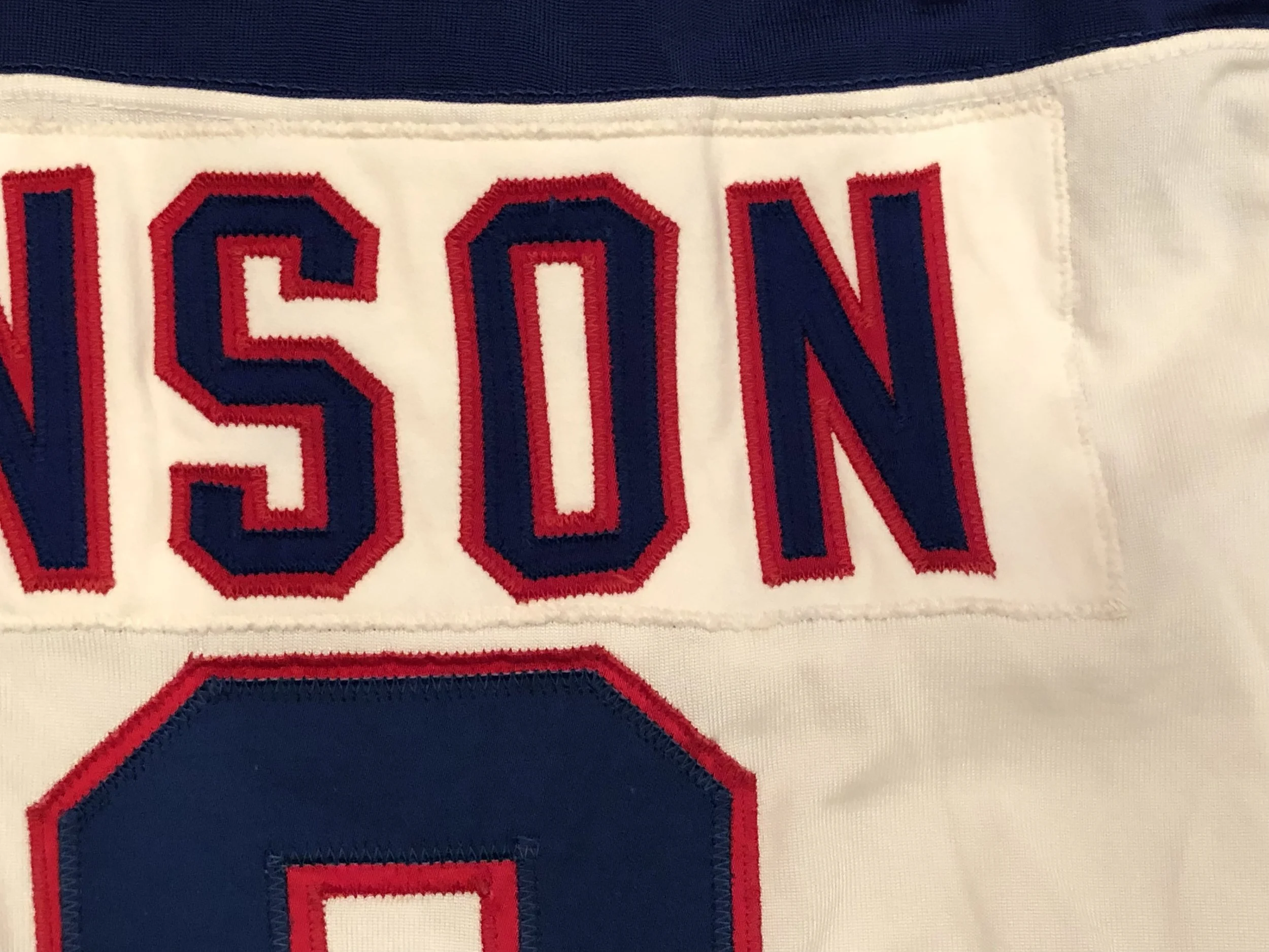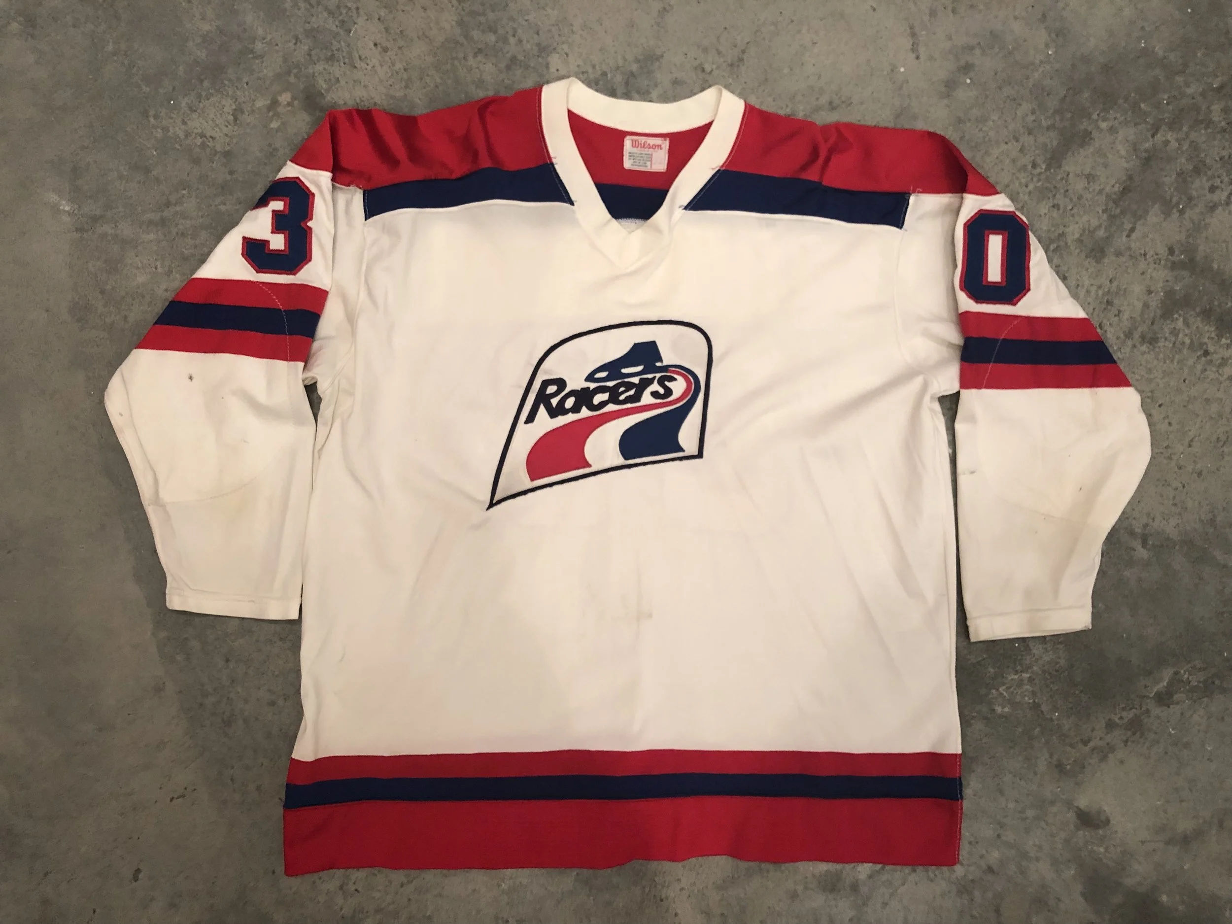 Description: This beautiful Racers WHA jersey was worn by journeyman goalie Paul Hoganson. It was won in the Winter 2004 Classic Collectibles auction and this is their description: Truly stunning Indianapolis Racers white durene Wilson jersey was worn by Paul Hoganson during the 1976-77 season. Surely able to relate to Gary “Suitcase” Smith, Hoganson played for 17 different teams in a 10-year pro career! Wilson company tag in the neck has size “52” added in ballpoint. Tackle twill Racers crest is sewn on the front as are the numbers on the back and sleeves and “Hoganson” across the knit nameplate. Jersey shows light but obvious game wear. Hoganson got into just 11 games with the Racers, several of them as a replacement as evidenced by his 3-2-0 won-loss-tied record. Sensational WHA jersey is in outstanding condition. Comes with a LOA.