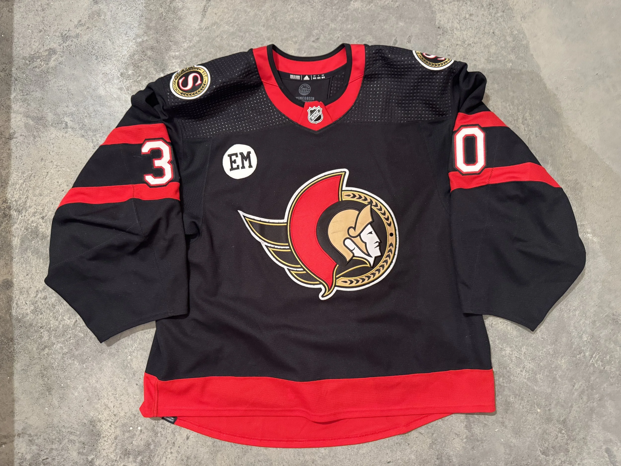 2020-21 Martin Jones game worn home jersey with Sharks 20th anniversary patch